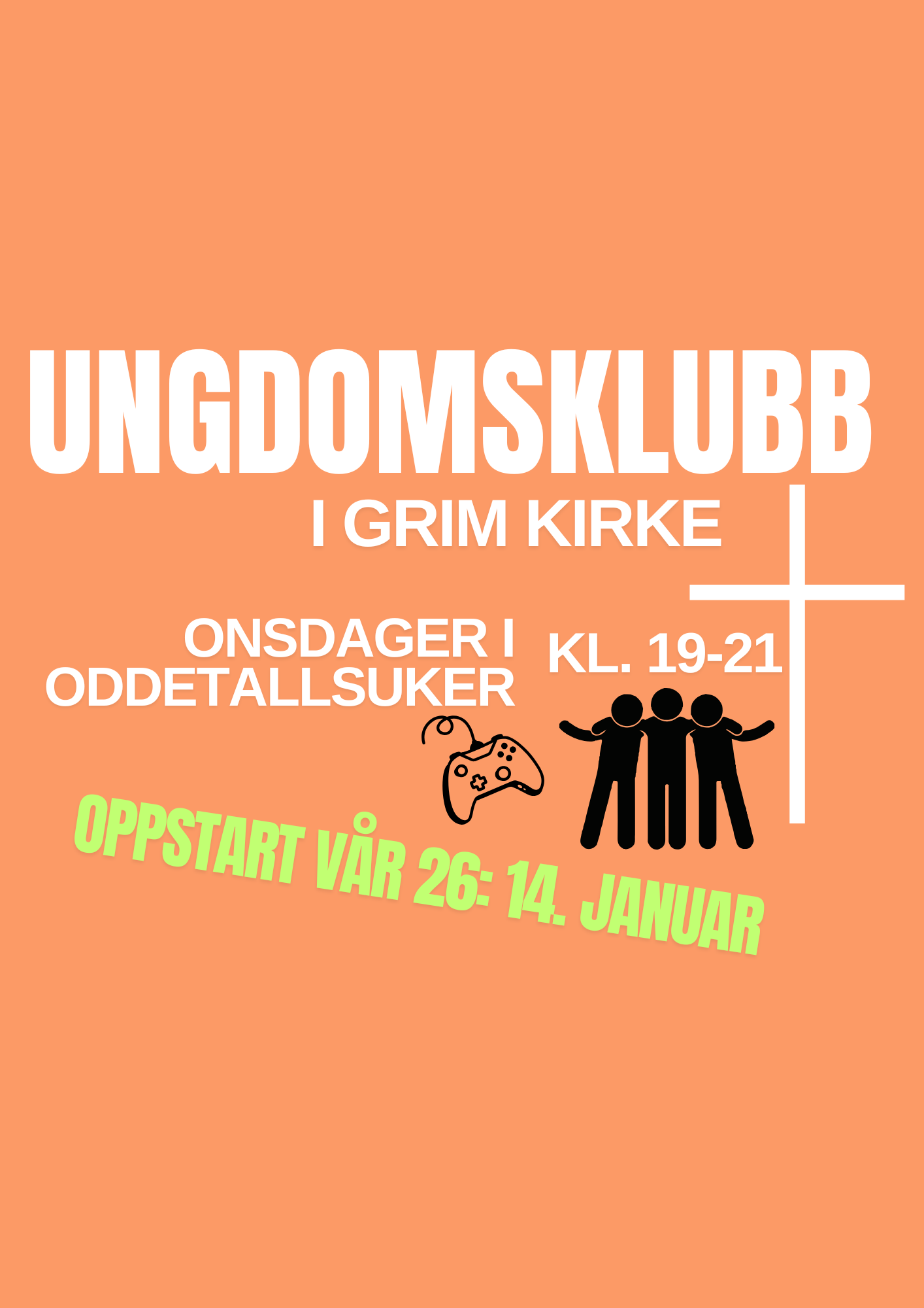 Alle som går på ungdomsskolen og videregående er hjertelig velkommen til ungdomsklubb i Grim kirke! Det blir ungdomsklubb onsdager i oddetallsuker fra kl. 19-21 i underetasjen i kirka. OPPSTART VÅREN 2026: 14. januar!