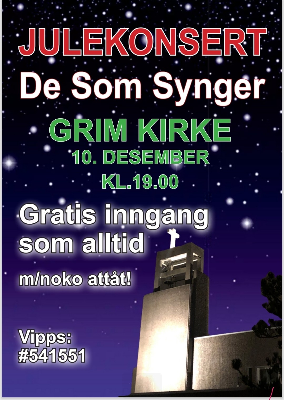Konserten med " De som synger" er gratis. Kom tidlig for å skaffe en god plass!